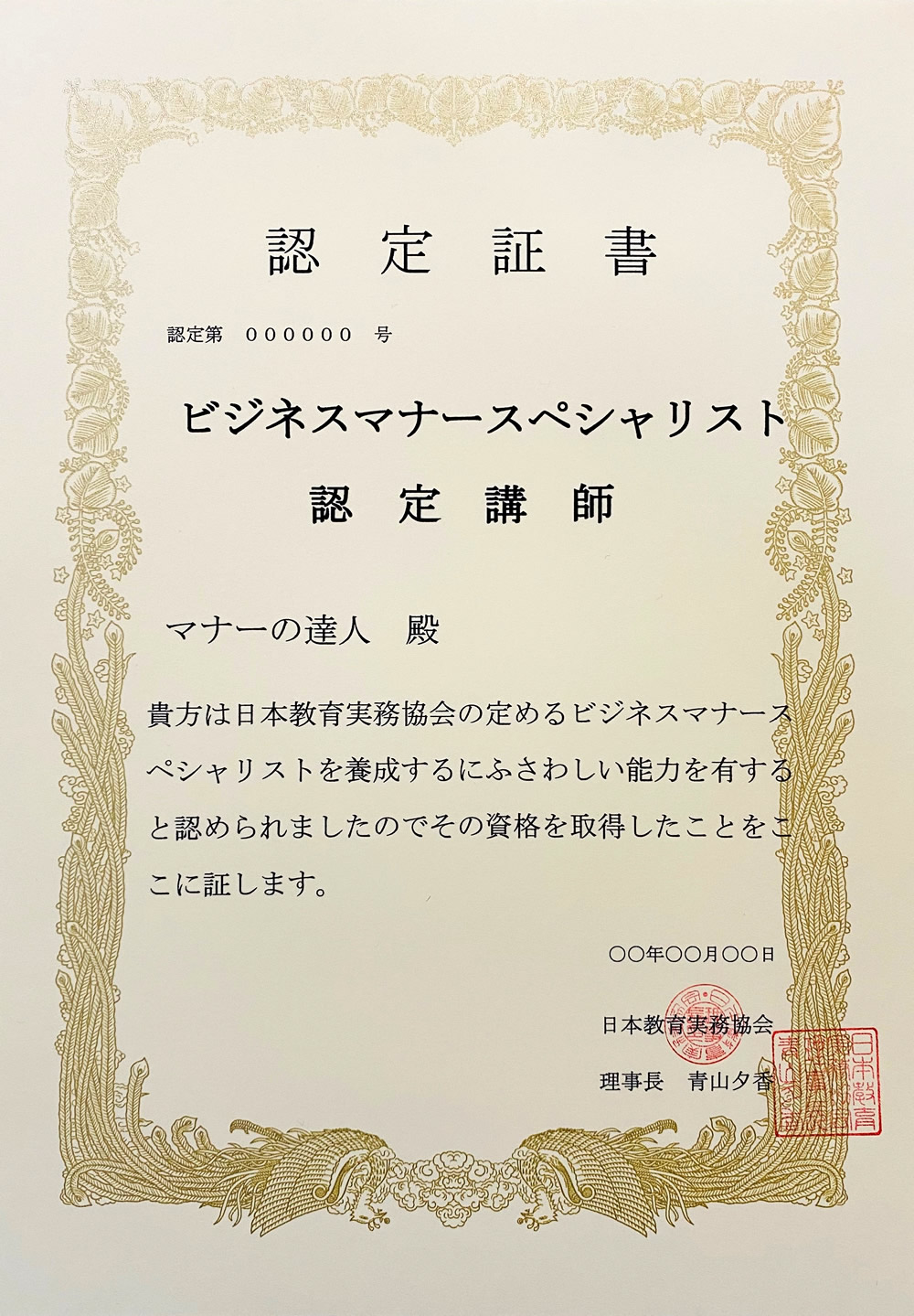 ② 新人研修ご担当者は、新人に「ビジネスマナースペシャリスト」という資格授与ができます。